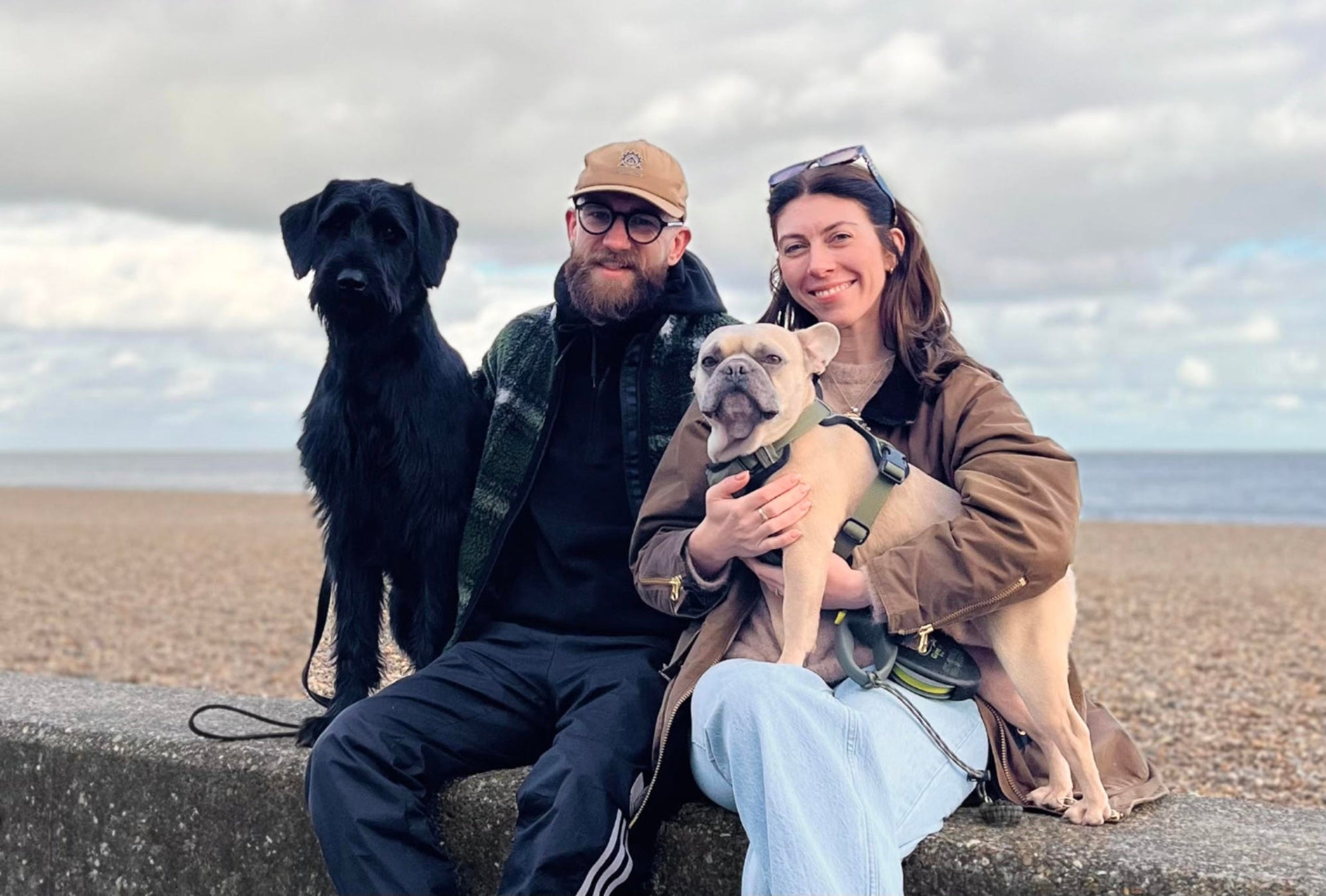 We’re husband and wife, Jamie and Sophie, founders of Native Breed—and these are our two dogs, Biggie (6 y/o Frenchie) and Gregor (20 m/o Giant Schnauzer).